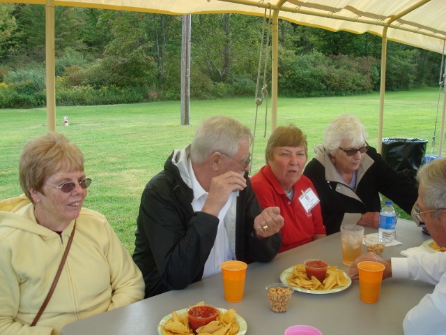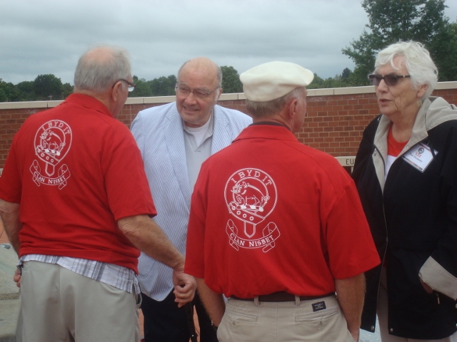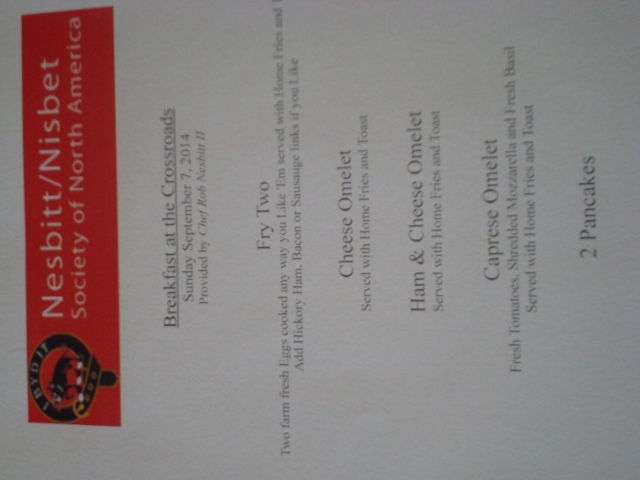 Our AGM was hosted by Nick Nesbitt, his father, Jeff, and their families in Edinboro, PA, Sept. 5-7, 2014. Dinner Sat. evening was at Jeff & Sue Nesbitts home in the back yard, complete with a roasted pig and all the trimmings prepared by our hosts, adult and other beverages, and an awesome bonfire! The day had been off and on rainy and cool while we were at the Highland Games in the N/N tent, but the weather cleared just in time for dinner and we were treated to a cool but wonderful evening meeting new N/N relatives and chatting with ones we already knew. Sunday morning was breakfast customized just for us at a local restaurant; our chef was Bob Nesbitts son Rob. The meeting was held during our awesome meal and another great AGM came to a close!
