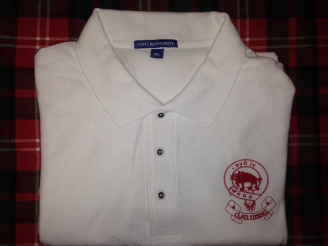 High quality polo shirt, featuring the clan logo in red. Perfect for the golf course, work, or when you just want to show off your Nesbitt/Nisbet pride.
